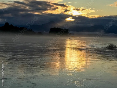 © EdgarUlises, Obraz premium sunset over lake River , Alaska