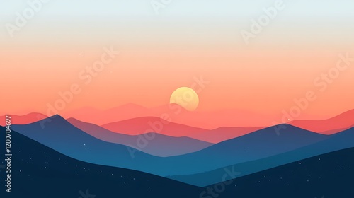 © Dua, Fototapeta premium Sunset Over Layered Blue And Red Mountains