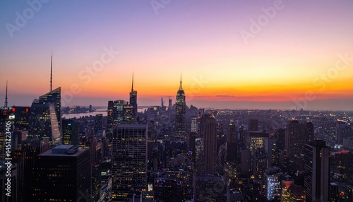 Obraz premium Sunset over manhattan captivating cityscape photography new york city urban landscape evening aerial view urban serenity