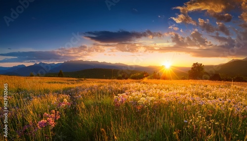 Fototapeta premium sunset over meadow
