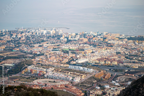 © Vitali, Fototapeta premium Sunset over Mediterranean sea and Fuengirola from Calamorro peak, Costa del Sol, Andalusia, Spain