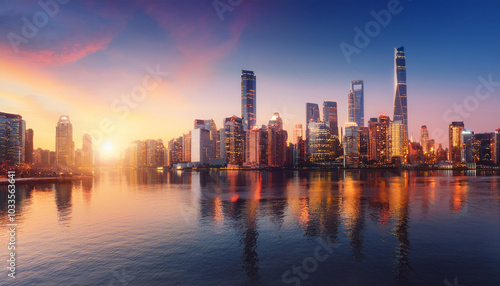 © MR, Fototapeta premium Sunset Over Modern City Skyline