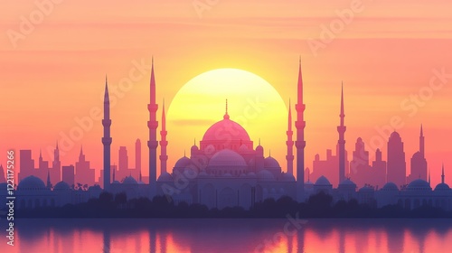 © wannathon, Fototapeta premium Sunset over Mosque and City Skyline