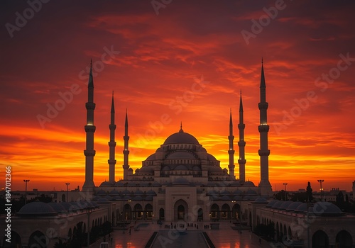© VectorStar, Fototapeta premium Sunset Over Mosque Architecture