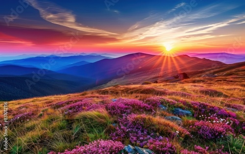© Hitam Putih, Obraz premium Sunset Over Mountain Meadow