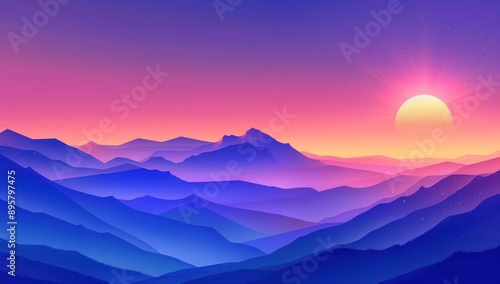 © zaen_studio, Fototapeta premium Sunset Over Mountain Ranges