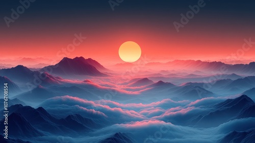 © gudangPIXEL, Fototapeta premium Sunset Over Mountains