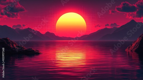 Naklejka premium Sunset Over Mountains and Water