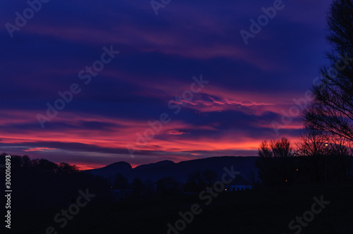 © Shanserika, Fototapeta premium Sunset over Mountains. Night dark blue and pink sky