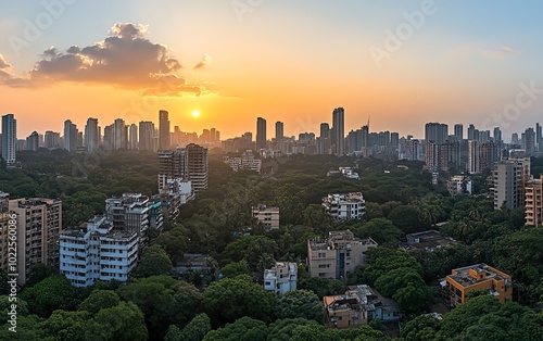 © Puchong, Obraz premium Sunset over Mumbai skyline