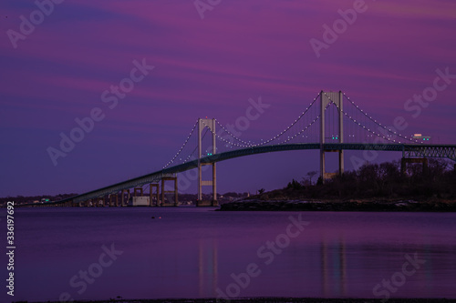 © Michael Pellegrini, Obraz premium Sunset over Newport Bridge