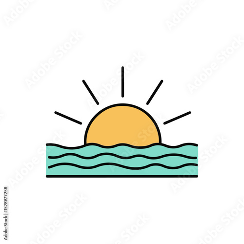 © Raymundus Nandy I, Fototapeta premium Sunset over Ocean Waves Minimalist Line Art Illustration