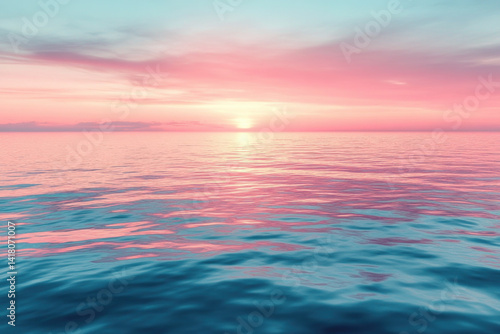 © Natalia, Obraz premium Sunset over ocean with pink sky.