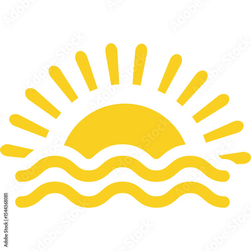 Obraz premium Sunset Over Ocean with Waves. Summer Beach Vector Icon