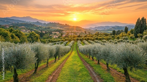 © milenialdesastudio, Fototapeta premium Sunset over olive groves