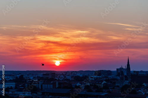 © Maryna, Fototapeta premium Sunset over Osijek, Croatia with vibrant colors illuminating the skyline