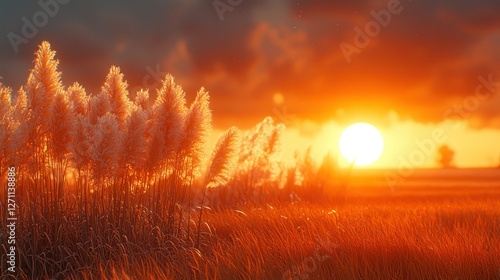 © andi, Fototapeta premium Sunset over Pampas Grass Field