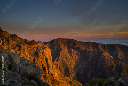 Fototapeta premium Sunset over Pico do Arieiro in Madeira with dramatic mountain landscapes and...