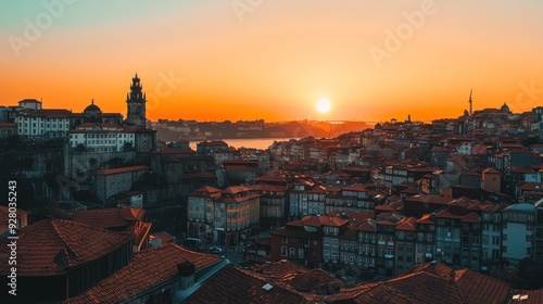 © adibaatmarini, Naklejka premium Sunset over Porto, Portugal