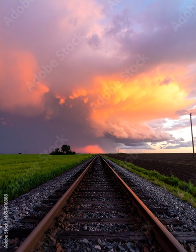 © lituhayu, Fototapeta premium Sunset over railroad tracks