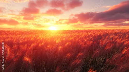 © muhammad, Fototapeta premium Sunset over red grass field, peaceful sky