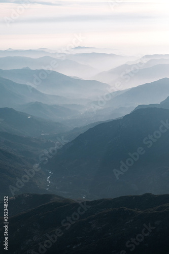 Fototapeta premium Sunset over redwood trees in Sequoia National Park, California, USA