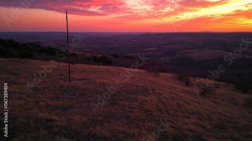 Obraz premium Sunset Over Rolling Hills With Tall Pole