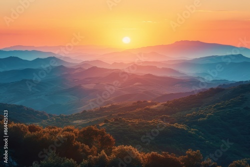 © Sandu, Fototapeta premium Sunset Over Rolling Mountains