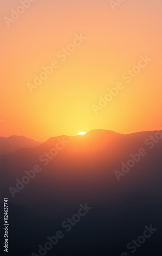© ibhonk, Fototapeta premium Sunset Over Silhouetted Mountain Range Landscape