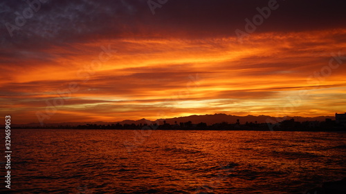 © Andres, Fototapeta premium Sunset over some mountains with cloudy sky