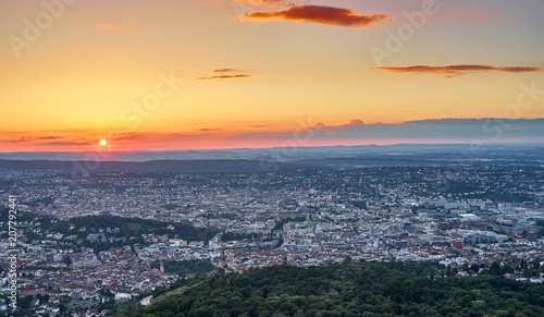 © marako85, Fototapeta premium Sunset over Stuttgart City in Germany / View from the first TV Tower in the world