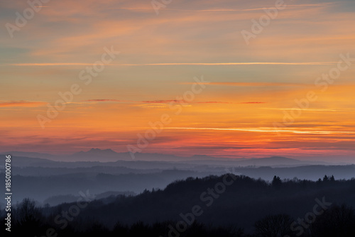 © LCH photo gallery, Obraz premium Sunset over Tatra Mountains seen from 150 km