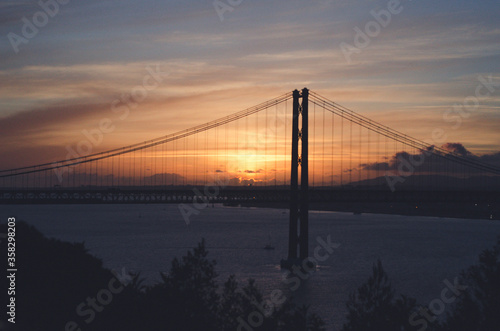 © Nazar, Obraz premium sunset over the bridge. big bridge in the sunset rays