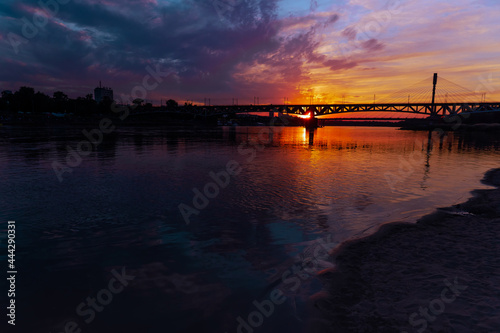 Fototapeta premium sunset over the bridge in Poland, Warsaw