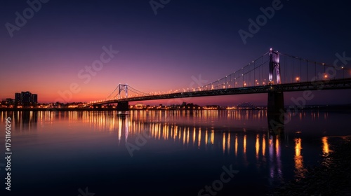© musa, Fototapeta premium Sunset over the bridge reflecting in the water with city lights.