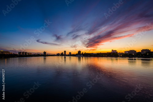 Naklejka premium Sunset over the Charles River, seen from the Massachusetts Avenu