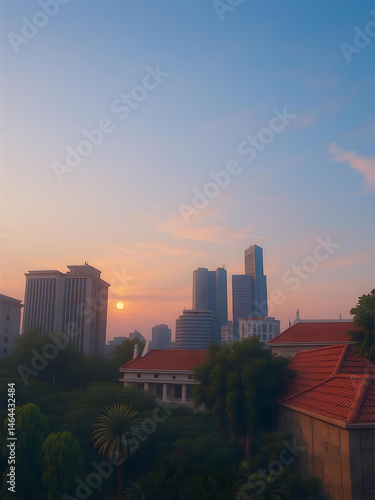 © Dimas, Fototapeta premium sunset over the city