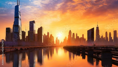 © ExploreAI, Obraz premium sunset over the city