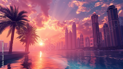 © Zed, Fototapeta premium sunset over the city