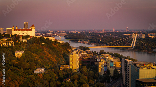 Naklejka premium sunset over the city, Bratislava Casle, Slovakia