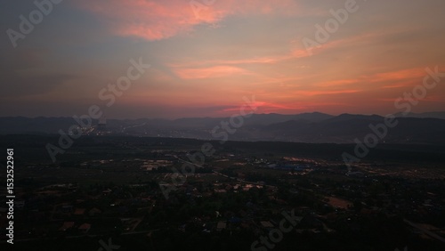 © Toii, Fototapeta premium sunset over the city Hongsa xaiyabuli Laos