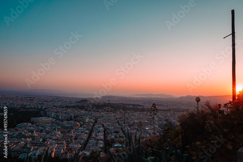 Fototapeta premium Sunset over the city of Athens from Lycabettus Hill