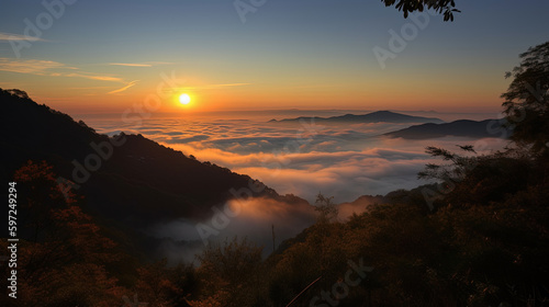 Fototapeta premium Sunset over the clouds.Generative Ai
