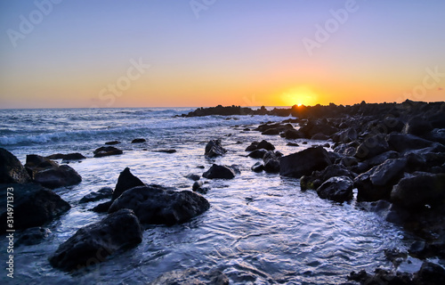 Obraz premium Sunset over the coast of Kauai, Hawaii.