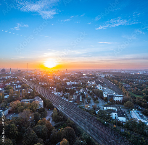 © Julia Hermann, Fototapeta premium Sunset over the Duisburg skyline