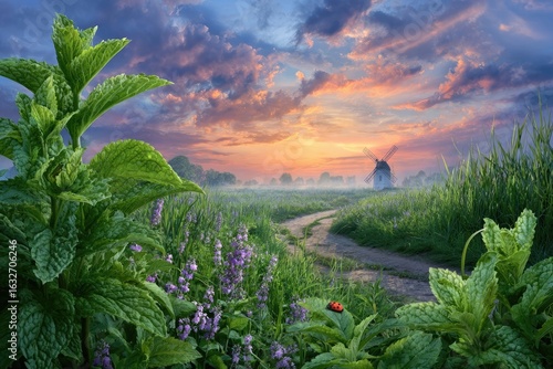 Naklejka premium sunset over the field
