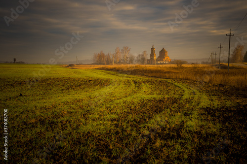 © Evgenii Ryzhenkov, Fototapeta premium sunset over the field