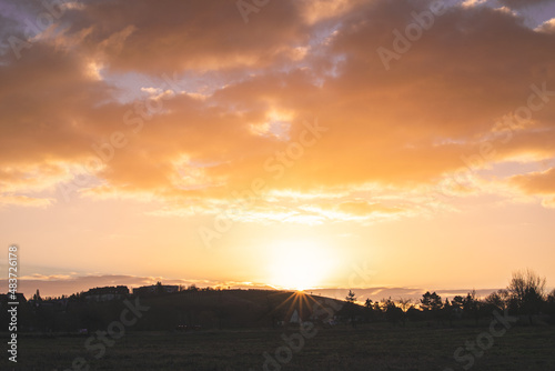 © Stefan Zimmer , Naklejka premium sunset over the field
