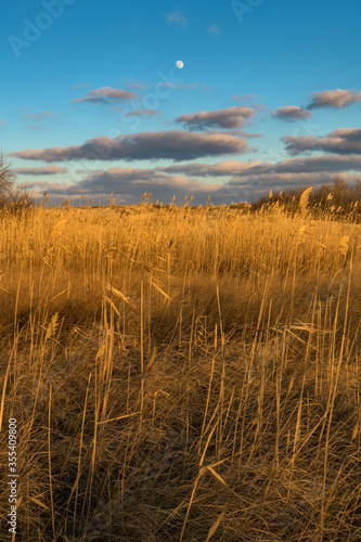 © Petar Bonev, Fototapeta premium sunset over the field with the rising moon