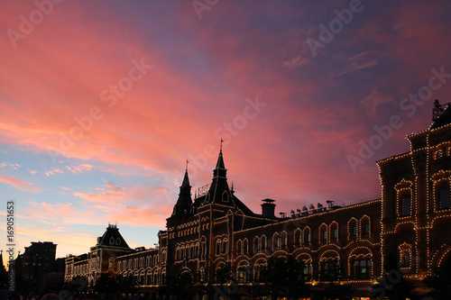 © zinovskaya, Fototapeta premium Sunset over the GUM Department store on red square
